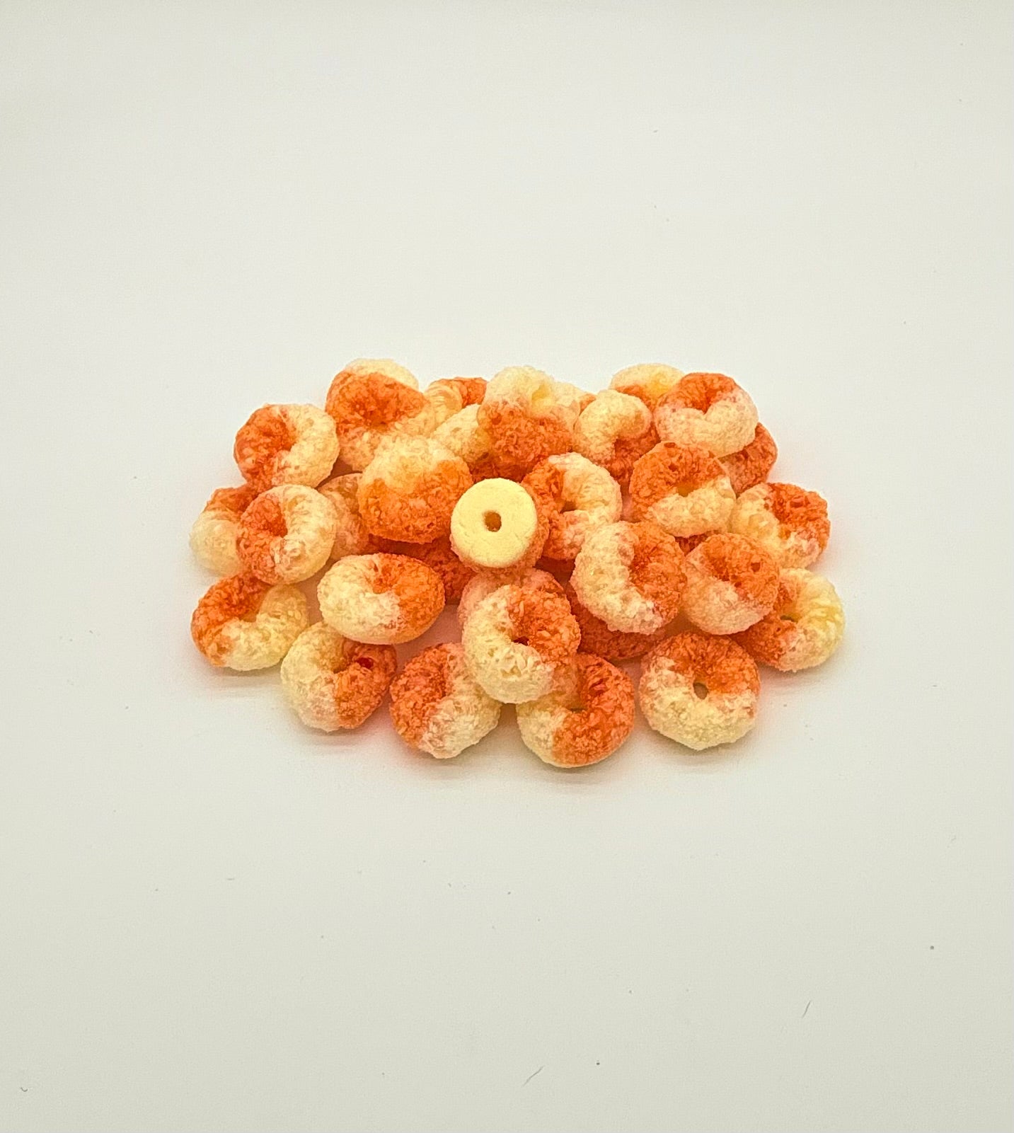 During the freeze-drying process, the candy develops a light, airy crunch on the top layer while the bottom remains dense and satisfyingly crisp. This creates a fun contrast of textures — airy and delicate on top, firm and crunchy underneath — while intensifying the sweet, slightly tangy peach flavour.